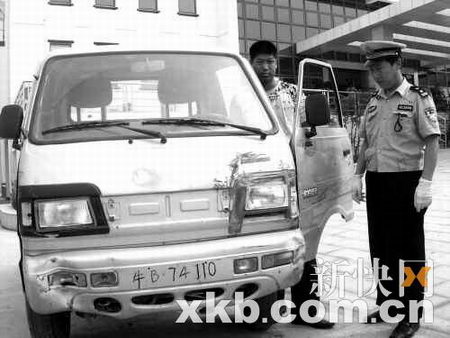 昨天上午,赵阳把有故障的小货车开出红太阳装饰城想去修理厂维修,不想刚出门就被民警抓了个正着。
