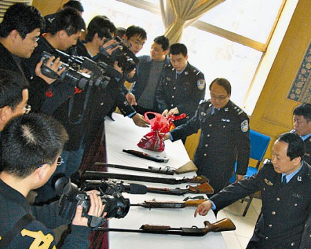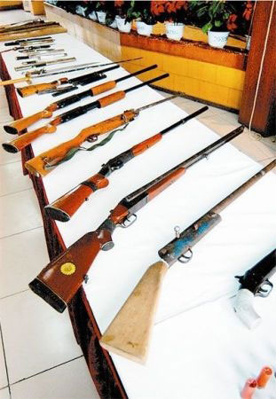 警方缴获清徐黑帮的枪支