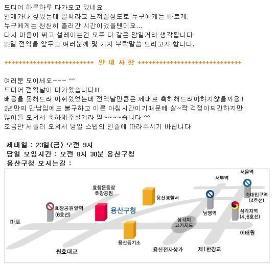金钟国韩国官方歌迷会贴出通知,今日去龙山迎接钟国回归。