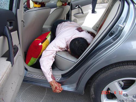 2007年4月12日,在贵州省桐梓县松坎毒品检查站,一名海南籍“黑老大”被警方当场击毙死亡在车上。