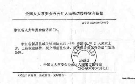 四、持有全国人大常委会办公厅的“请接谈并督促有关部门依法处理”的信访函。