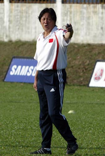 在7月13日的准备活动和5对5分队对抗结束后,朱广沪把助理教练李宵鹏叫到了身边,给了他两个标志碟,向他讲解了自己的要求,在禁区角上用两个标志碟摆一个45度角的切入线,所有的队员都要在这条线上切入大禁区,然后抬脚打门。