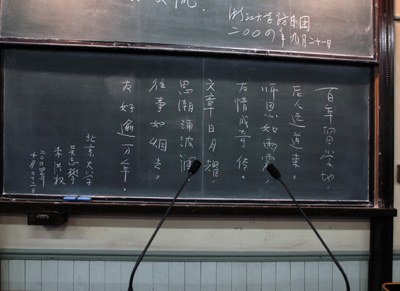 阶梯教室有栅栏保护,一般人难以进入,东北大学有关人士听说我们是中国记者,特意把门打开,让我们进入阶梯教室。教室并不太大,有十多排木制的长椅,是一座普通的教室,如果说有特点的话,就是它的阶梯形状,一排长椅是一个阶梯,坐在最后排的人位置最高。