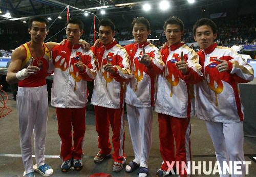 中国男团的小伙子们在决赛中交出了一份任何人都会感到满意的答卷:他们的首个项目是自由体操,随后肖钦的鞍马比赛精彩绝伦,几乎可以让在场的观众为之疯狂,16.225分是最好的答案。中国队同时拥有上届世锦赛的吊环冠军陈一冰和双杠冠军杨威,他们都有着世界级水平的表现;在拿手的跳马比赛中,中国队获得了当晚比赛的团体最高分48.375分;最后一个项目单杠项目中,邹凯取得了单杠选手难得的高分15.?275分。赛后的德国选手菲利普毫不掩饰自己的惊喜:“如果赛前有谁告诉我我们会赢得决赛的铜牌,我只会认为它是痴人说梦!”